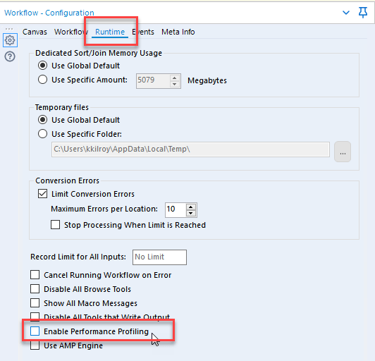 ► Did you ever wonder which tools in your workflow might be causing bottlenecks? Enable the ‘performance profiling’ feature from the Runtime tab to see how long each tool in your workflow is taking and go from there.
