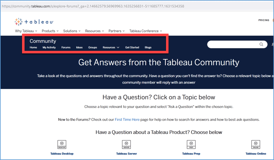 Tableau’s site > Resources > Community > Community Forums